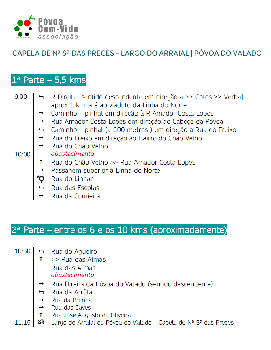 9h00, partida da Caminhada (Largo do Arraial da Póvoa do Valado)